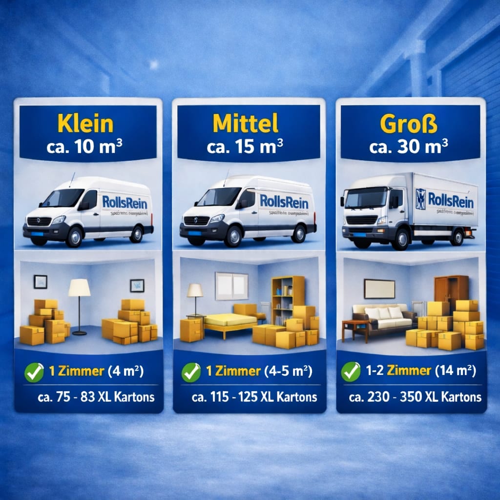 Die Angaben basieren auf durchschnittlichen Haushaltsgrößen und Umzugserfahrungen. Bei Unsicherheit empfehlen wir eine etwas größere Einheit.
