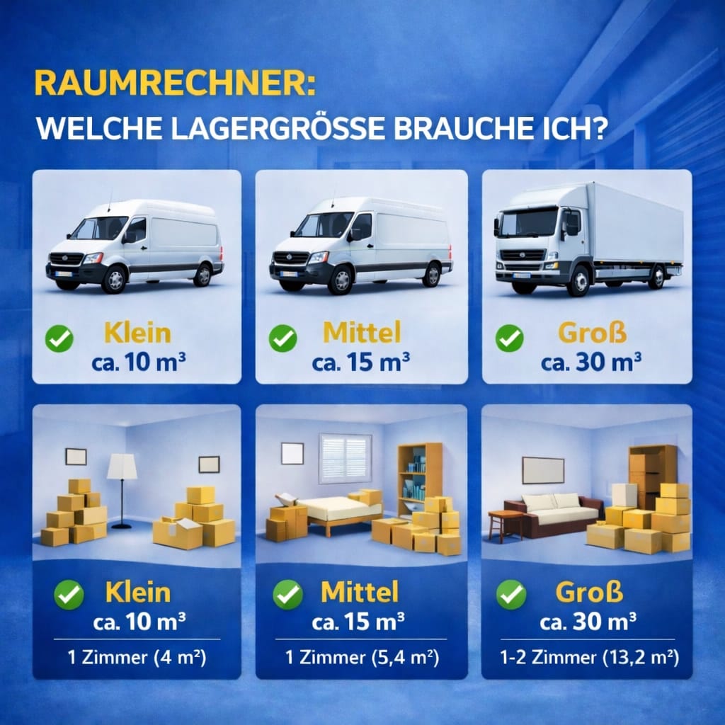 Mit unserem Raumrechner finden Sie in wenigen Sekunden die passende Lagergröße – einfach, schnell und transparent.